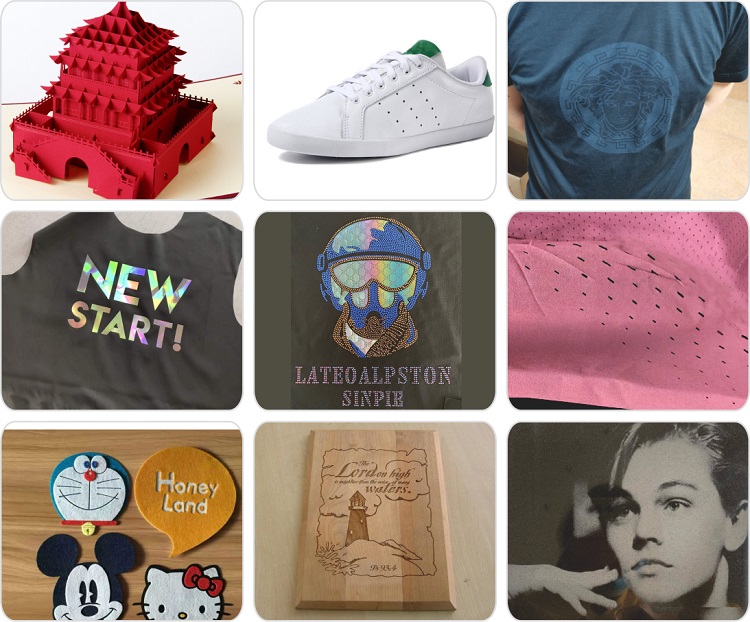 絕大部分非金屬材料,如皮革、布料、木器、竹器、不干膠、紙張、有機(jī)材料、亞克力、石材等。